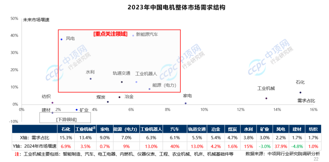 新能源汽车、工业机器人、风电(双碳目标的指引)在国家政策支持和引导下其行业发展前景可观,新兴行业也是电机市场(尤其是伺服电机)未来重点关注的领域。在此环境下,预计2024~2025年,中国电机整体市场年均增速将保持在3%~4%。