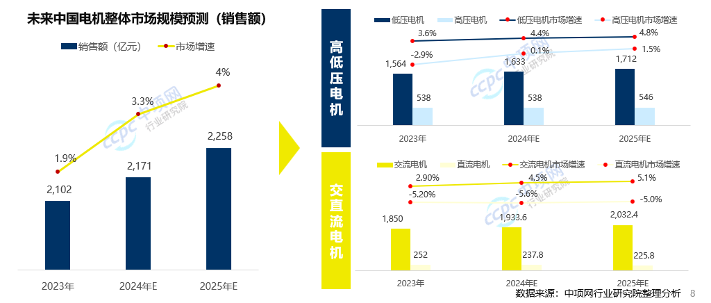 细分市场中,低压电机和交流电机是市场主流品类,预计其未来两年市场增速仍将保持4%~5%。