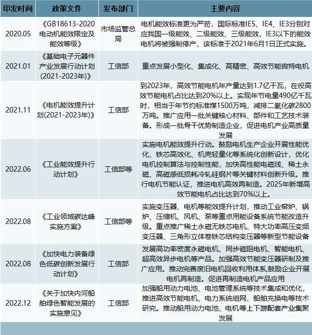 电机行业政策环境分析