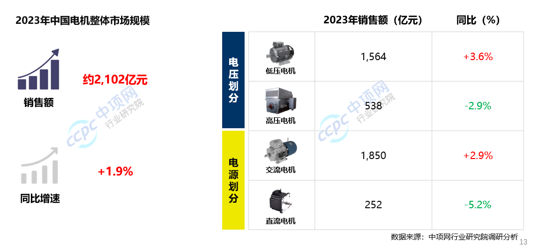 2023年,中国电机总销售额小幅上升,全年总销额约2,102亿元 ,同比增长1.9%。